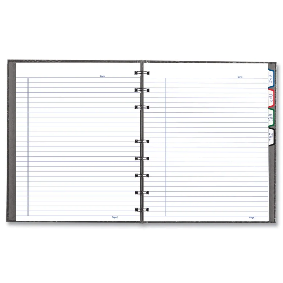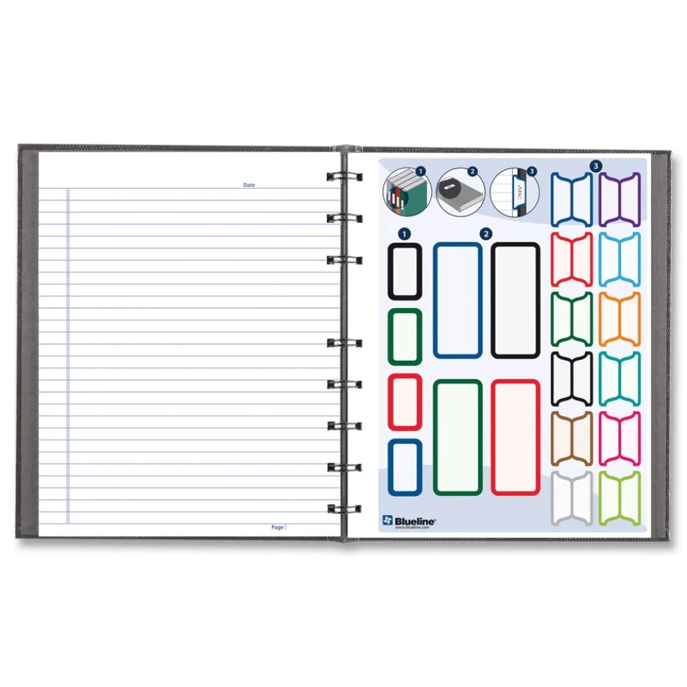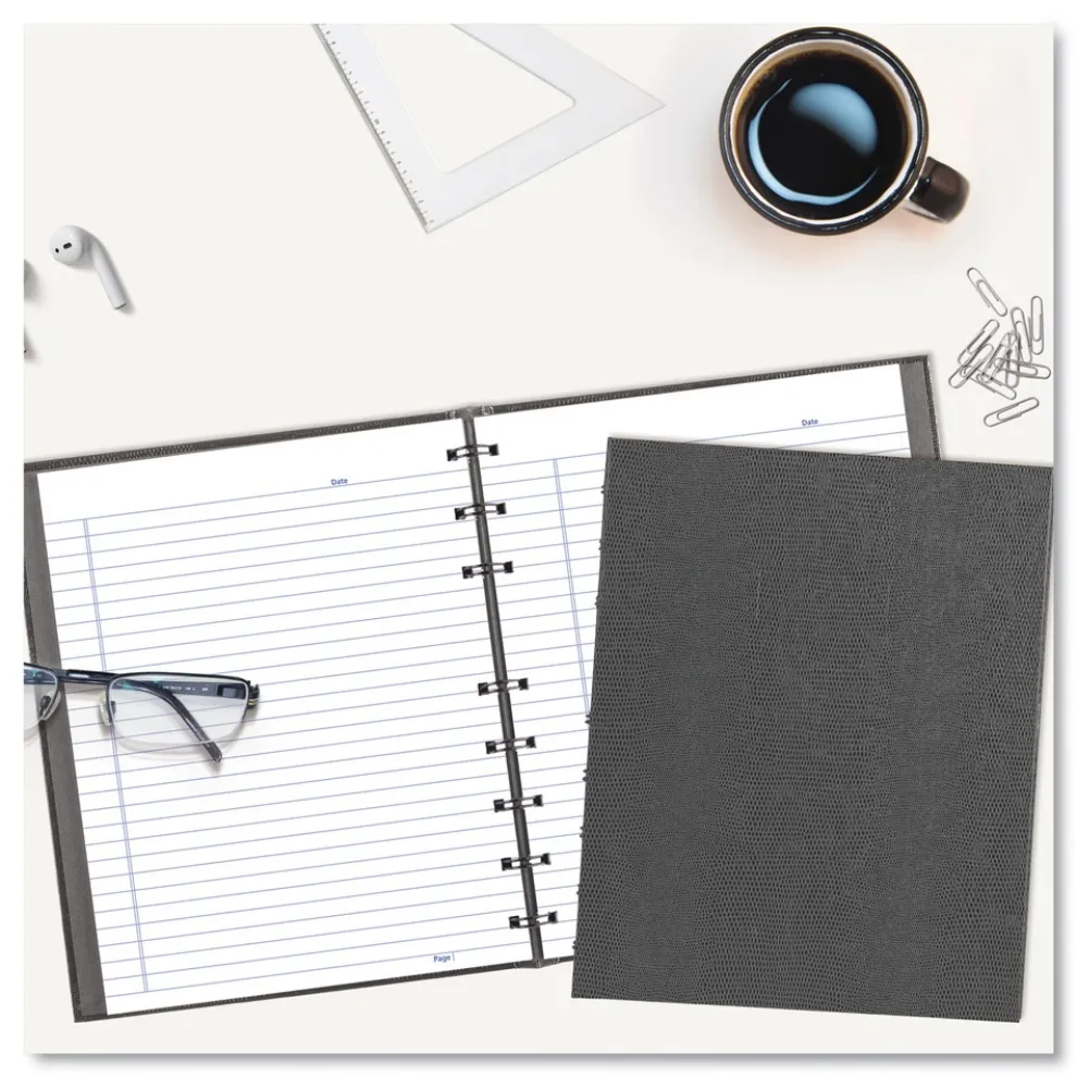 Take notes like a pro with NotePro. Hardcover notebook delivers increased writing stability while its lizard-look cover pattern adds an attractive element of professional sophistication. Each microperforated sheet features an abbreviated note-taking format with space for you to capture dates, titles and entry-specific page numbers. Variously colored self-stick tabs and labeling stickers are included for customizing an index, for adding a custom title to the front cover or spine as well as for drawing extra attention to important notes, pages and sections. Twin-wire binding allows the book to lie flat when open. Interior storage pocket accommodates loose sheets, receipts, tickets and more. Archival-quality paper is printed with vegetable-oil-based inks.