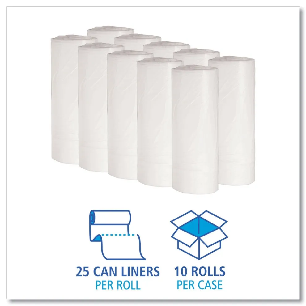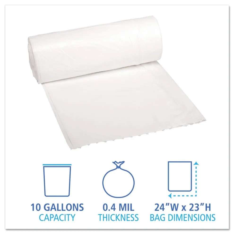 (25 Bags/Roll, 20 Rolls/Carton) 10 Gallon 0.4 mil 24 in. x 23 in. Perforated Roll Low-Density Waste Can Liners – White – 2423EXH