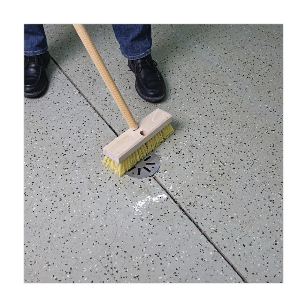 Narrow hardwood block brush head enables enhanced pressure transfer for more effective scrubbing, brushing, and moving debris. The two threaded handle holes allow you to easily screw in handles and switch the brush orientation to achieve more even bristle wear over time. Built with a strong and durable hardwood block head for use with threaded 1.13 in. diameter handles, which are sold separately.