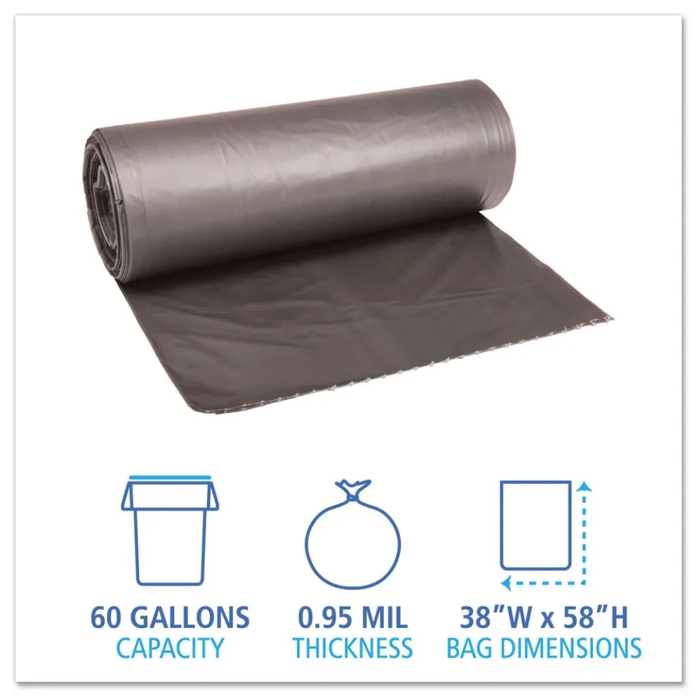 (100/Carton) 38 in. x 58 in. 60 gal. 0.95 mil Recycled Low-Density Polyethylene Can Liners – Black – 528