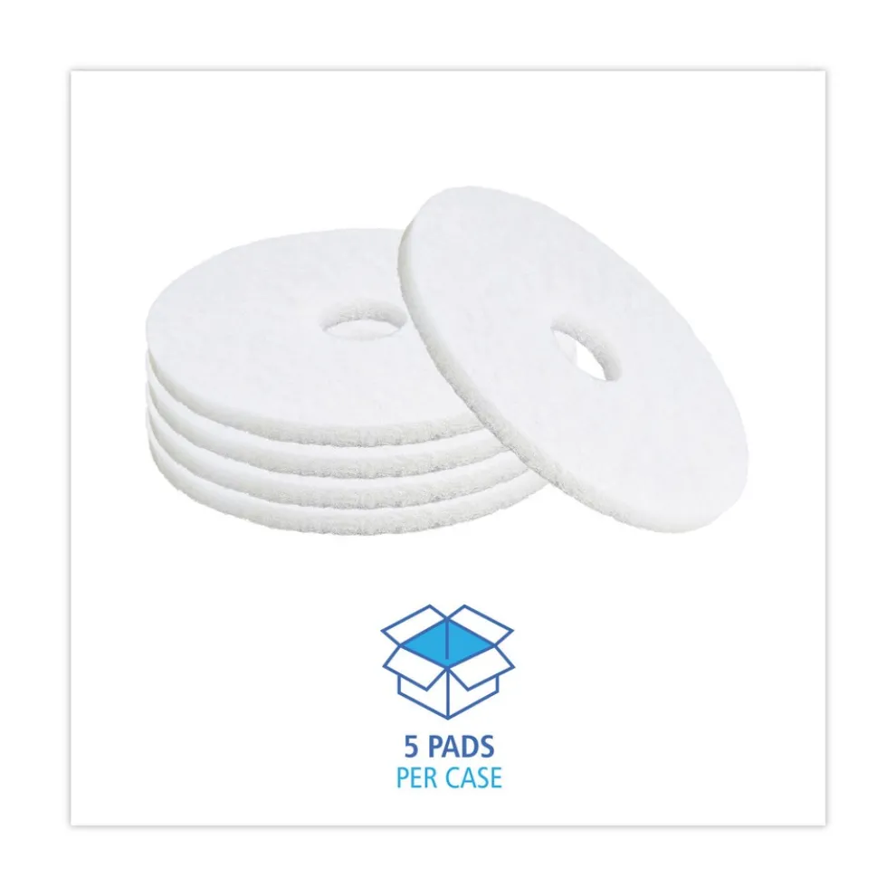 Boardwalk BWK4015WHI 15 in. Diameter Polishing Floor Pads – White (5/Carton)