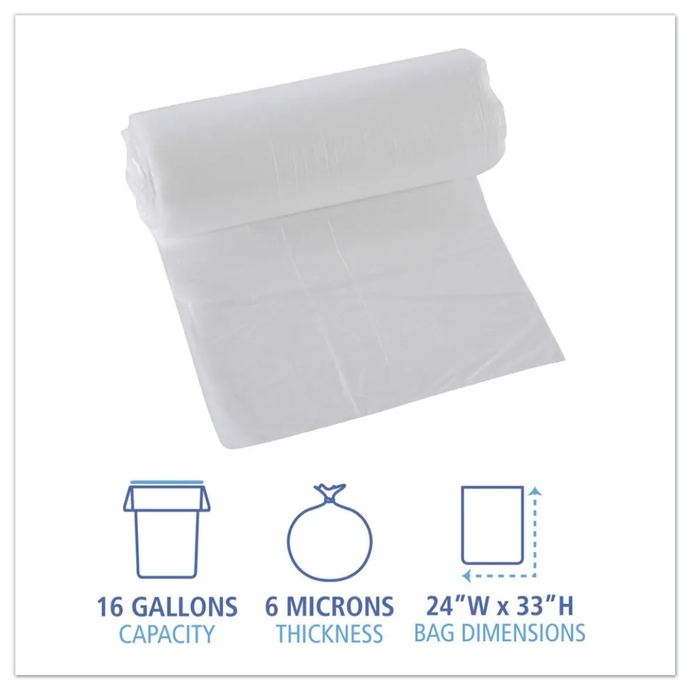 (50 Bags/Roll, 20 Rolls/Carton) 16 Gallon 6 mic 24 in. x 33 in. Perforated Roll High-Density Can Liners – Natural – 243306