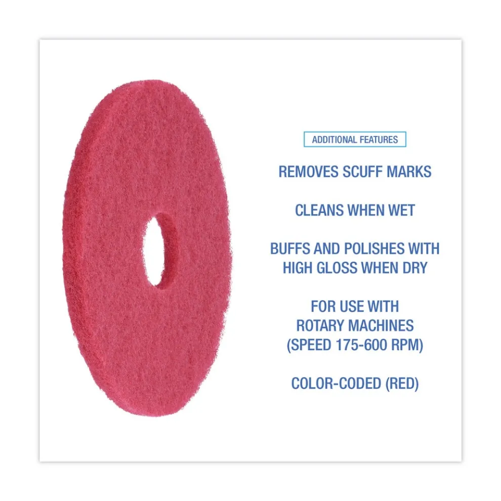 Boardwalk BWK4016RED 16 in. Diameter Buffing Floor Pads – Red (5/Carton)