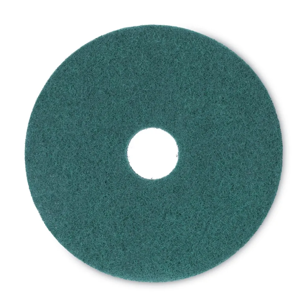 Extra heavy-duty scrubbing pad attaches to a rotary machine to remove dirt, spills, and scuffs. Easily scrub floors by mounting the pad onto the machine and let the powerful scrubbing pad go to work, removing heavy traffic and build-up with ease. The surface is cleaned, removed of debris, and ready for recoating if needed. For use with Rotary Machine Speed of 175 to 600 RPM. Color-coded for easy job identification.