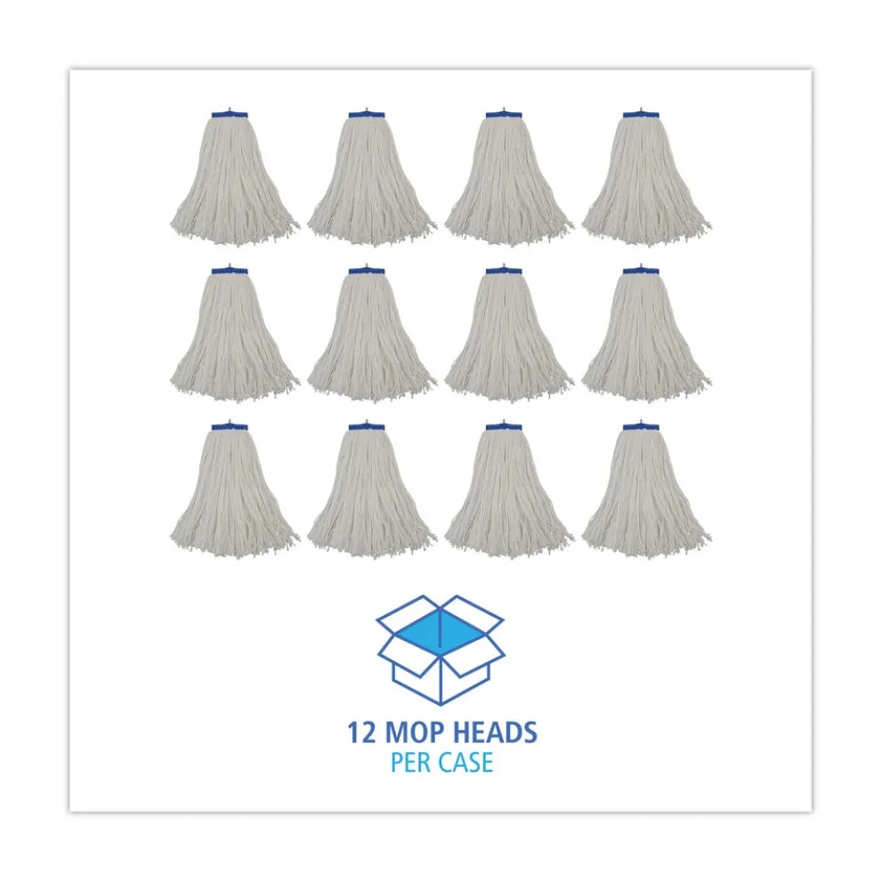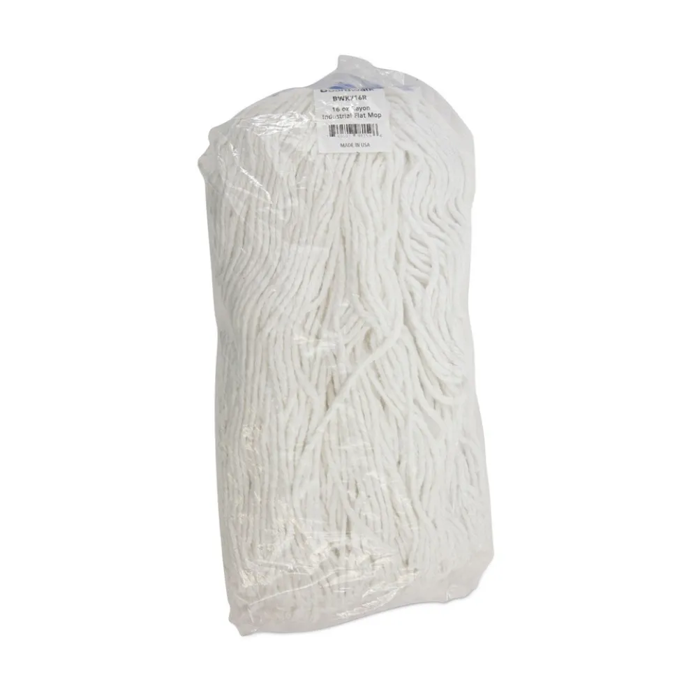 Boardwalk BWK716RCT 16 oz. Cut-End Lie-Flat Rayon Wet Mop Head – White (12/Carton)