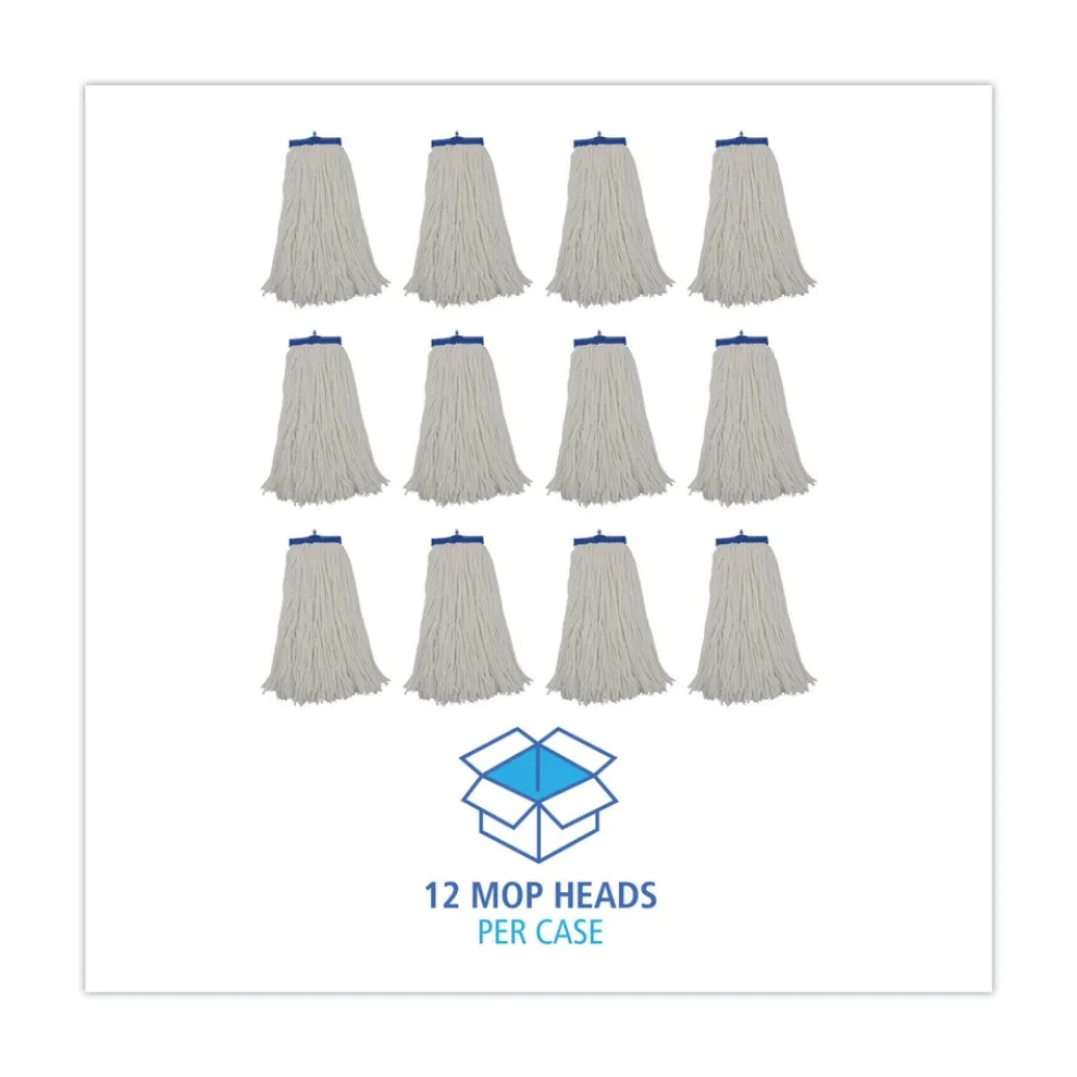 Boardwalk BWKRM32016 16 oz. Rayon Cut-End Lie-Flat Mop Head – White (12/Carton)