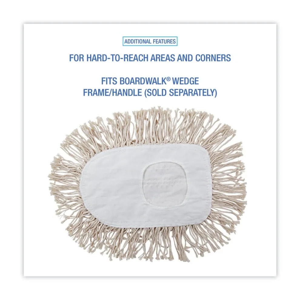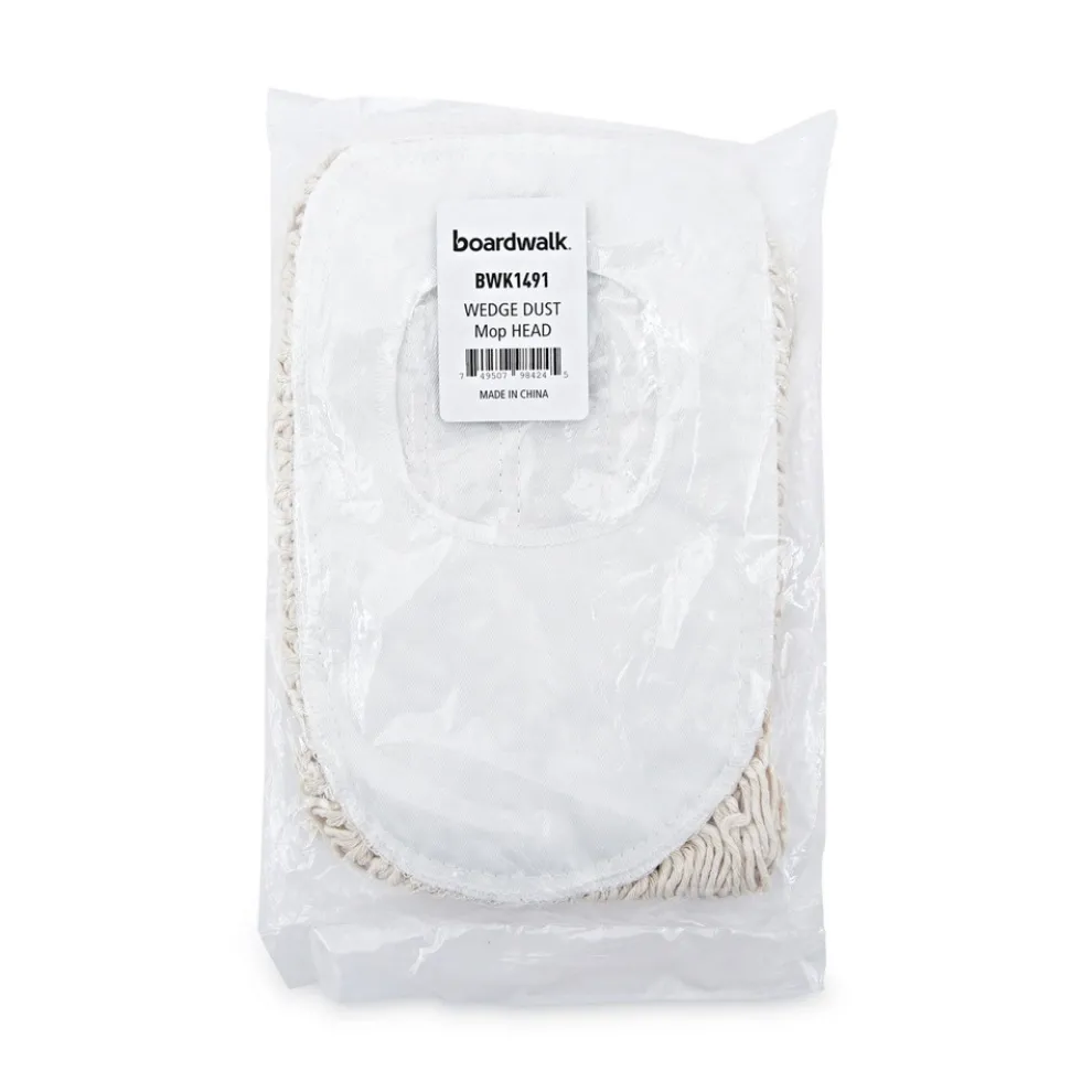 Boardwalk Wedge Dust Mop Head is the perfect dusting tool for cleaning hard-to-reach overhead areas, corners, and around furniture. The compact, angled design helps clean where other dust mops can’t reach, removing dust instantly. The quality dustmop is constructed with cut-end, white cotton yarn for lasting use. The slotted backing is designed to hold a wedge frame handle (sold separately).