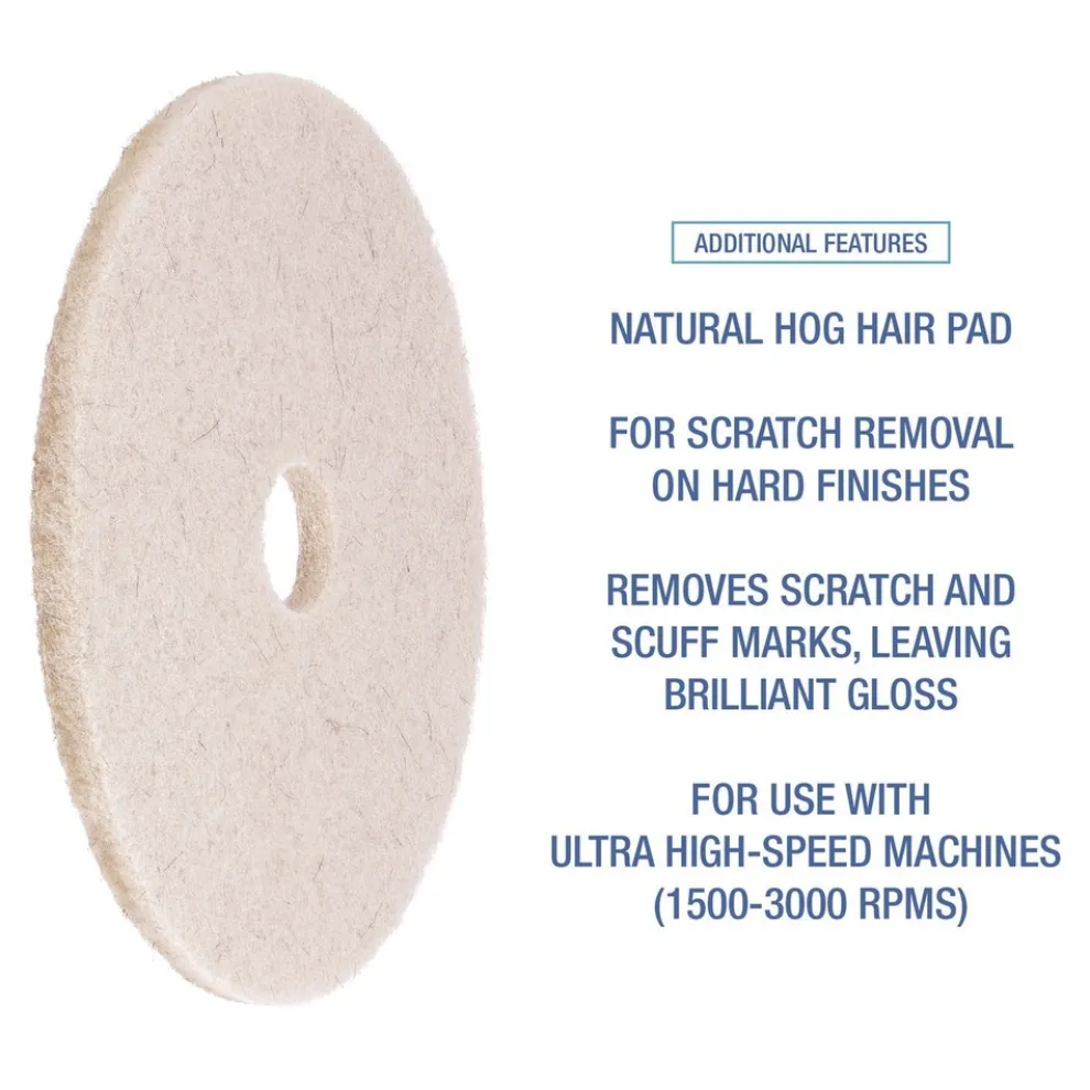 Take your floors to the next level with a natural, hog hair, burnishing floor pad that removes unsightly scratches and scuff marks from floors. Add a brilliant, glossy shine to floors that welcomes customers and gives the right impression from the start. Value pad constructed from durable fibers that require less replacement. For use with ultra, high-speed rotary machines (1,500 to 3,000 RPM).