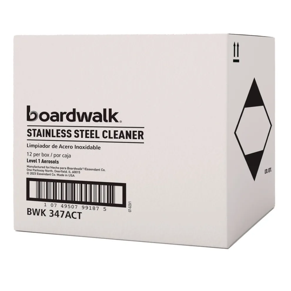 Boardwalk 1041284 18 oz. Aerosol Spray Water-in-Oil Based Stainless Steel Cleaner and Polish – Lemon Scent (12/Carton)