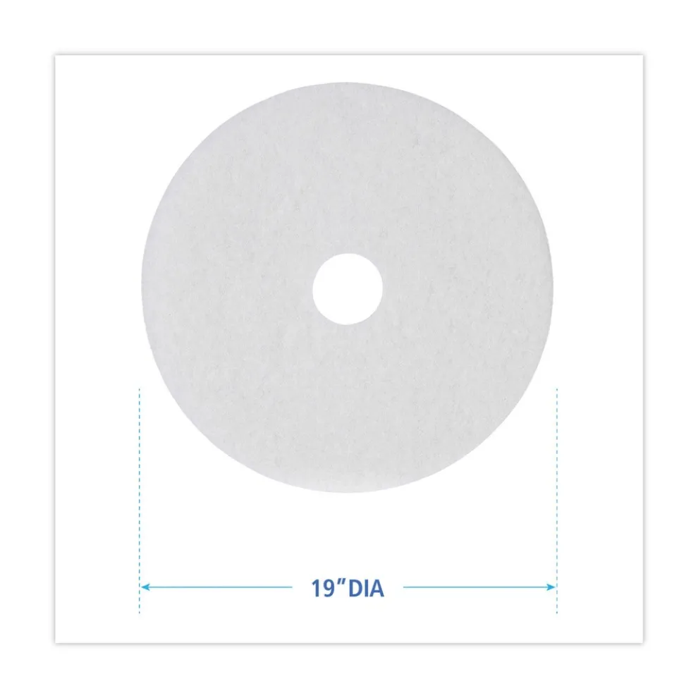 (5/Carton) 19 in. Diameter Polishing Floor Pads – White (5/Carton) – 4019WHI