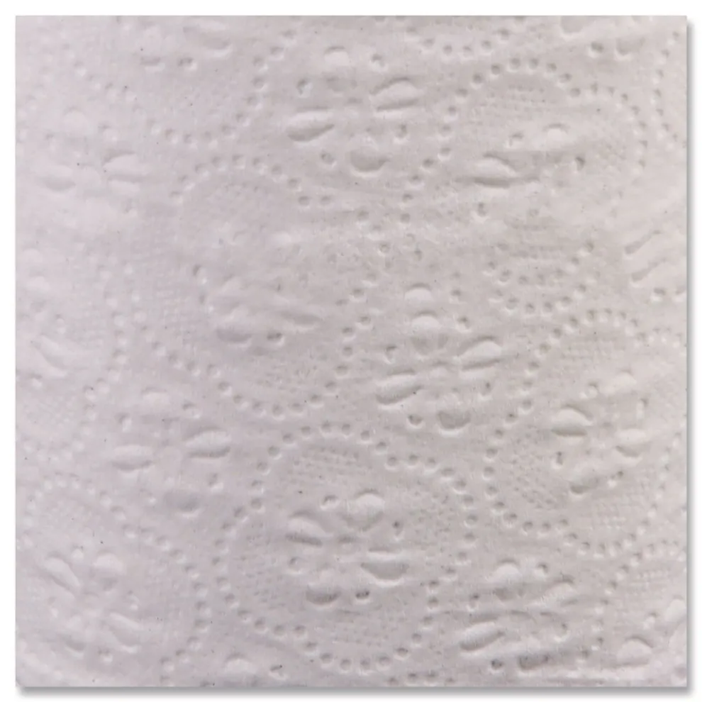 Quality, durable toilet tissue that’s soft and absorbent, yet available at an economical price. Two-ply, durable, embossed white tissue on a standard size perforated roll. Individually wrapped for maximum cleanliness and safety. Ideal for use in any industrial, office, restaurant, or retail bathroom where standard size rolls are used. Fits within standard size toilet-roll paper holder or dispenser.