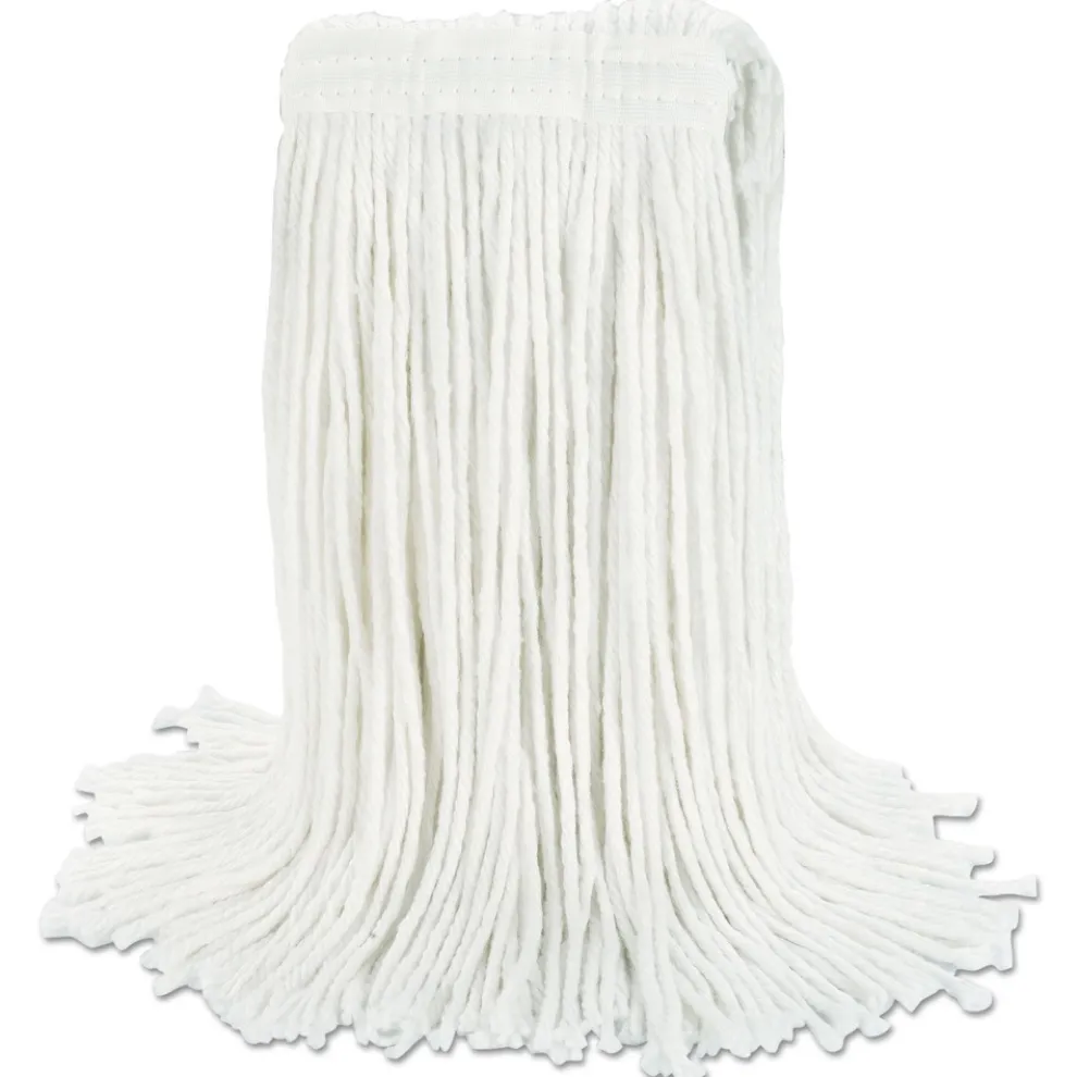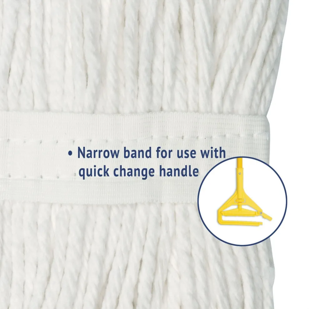 Clean up quicker with a high-quality, ultra-absorbent mop head. Cut-end design minimizes snags. Heavy-duty headband ensures secure attachment to handle. For use with clamp-style mop handles and wringer bucket (sold separately). Soft enough to clean delicate floors, yet durable enough to handle harsh chemicals and stains. Great for use in industrial settings, including restrooms, hallways, offices, lobby areas, kitchens, and dining areas.