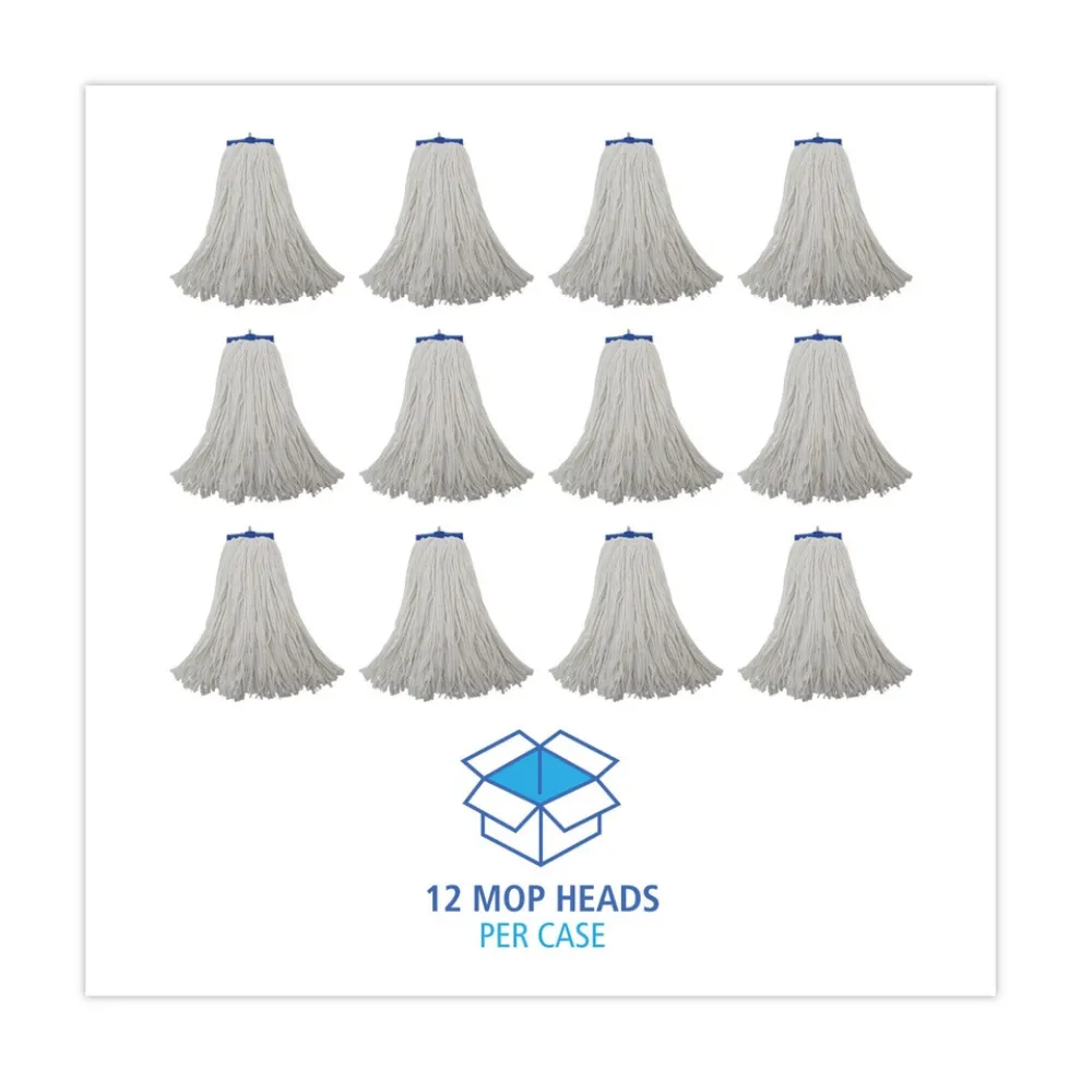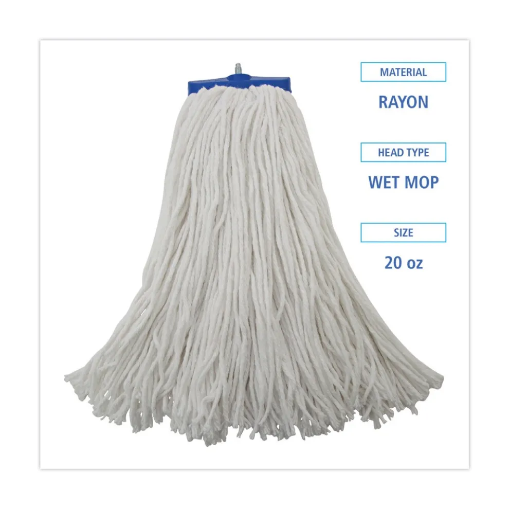 Boardwalk BWK720R 20 oz. Economical Lie-Flat Rayon Fiber Mop Head – White (12/Carton)