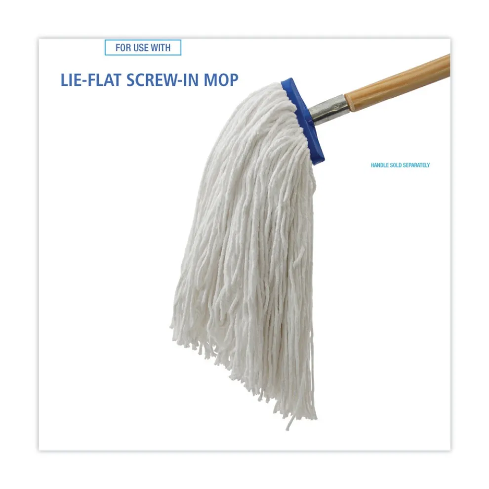 Boardwalk Cut-End Lie-Flat Economical Mop Head is constructed with premium, 4-ply yarn for added absorbency. Built with a standard 1/4 in. threaded bolt head for easy screw-in mop head change. The mop heads are held together and wrapped with a galvanized metal outerband for the utmost in durability. The mop lies flat on floor and is designed for use with a lie-flat screw-in mop handle, which is sold separately.