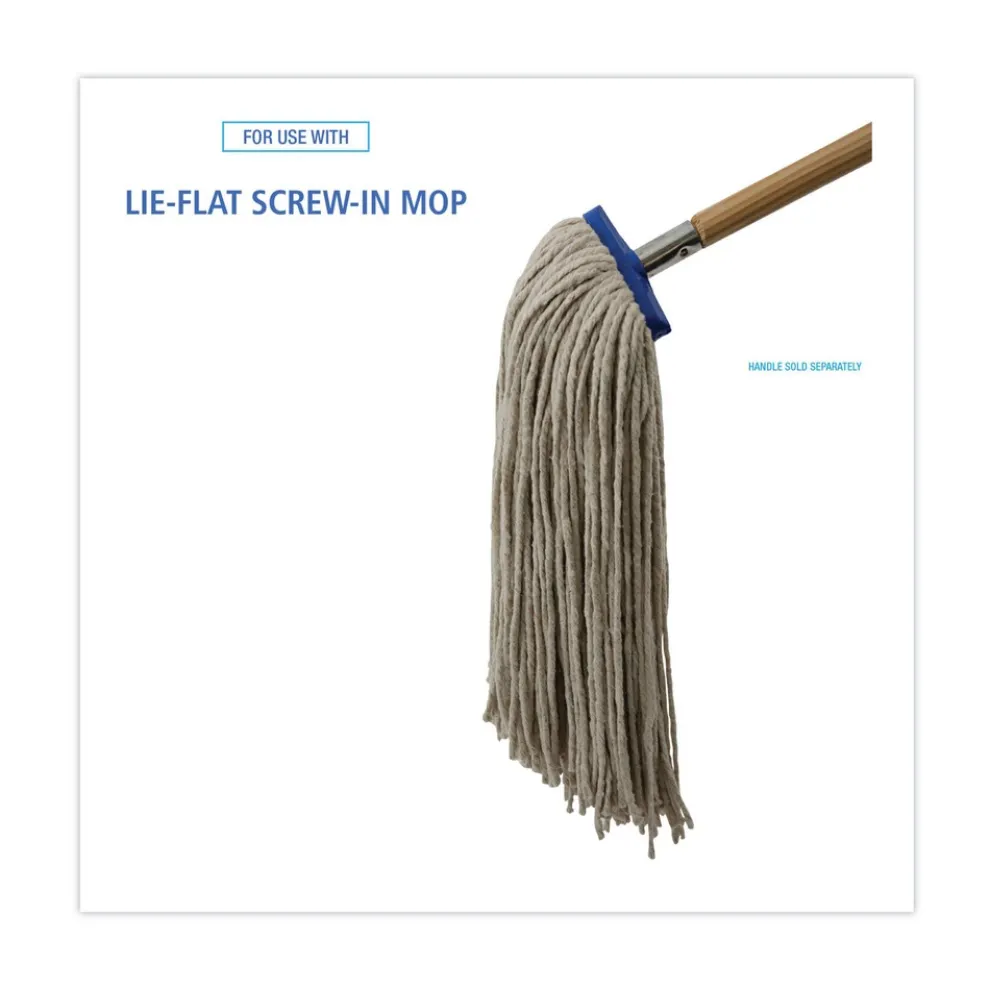 Boardwalk Cut-End Lie-Flat Economical Mop Head is constructed with premium, 4-ply yarn for added absorbency. Built with a standard 1/4 in. threaded bolt head for easy screw-in mop head change. The mop heads are held together and wrapped with a galvanized metal outerband for the utmost in durability. The mop lies flat on floor and is designed for use with a lie-flat screw-in mop handle, which is sold separately.