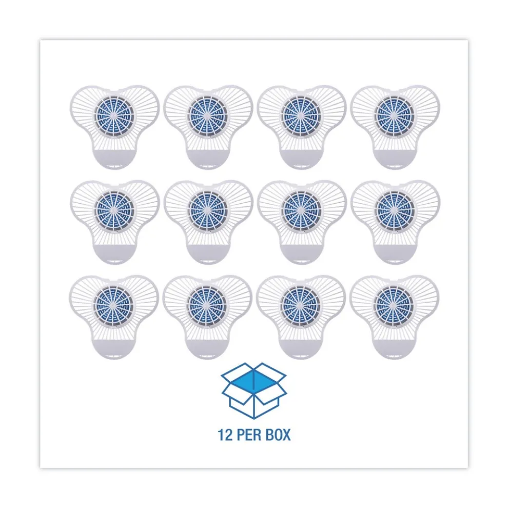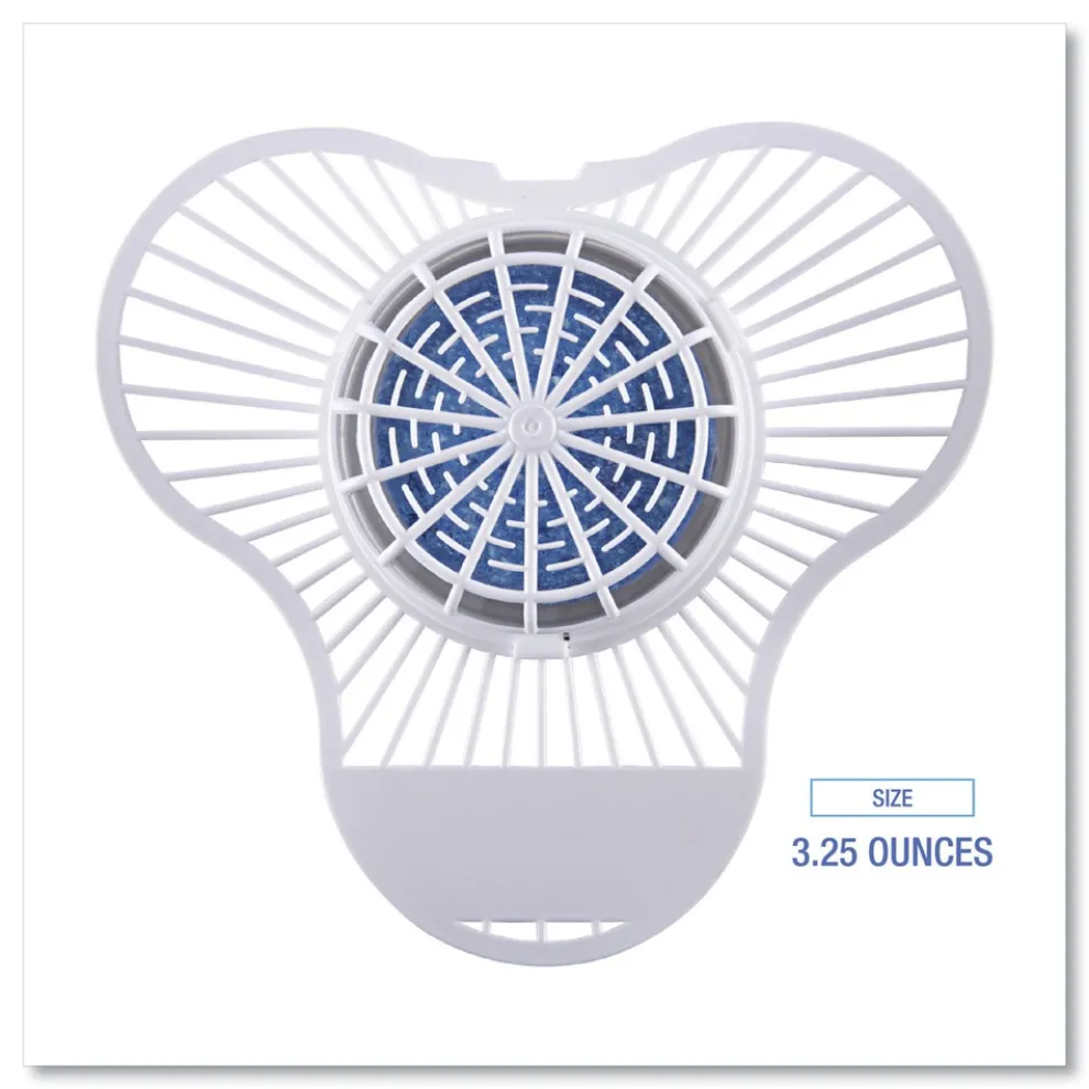 Boardwalk TBSP012I072M332143000 3.25 oz. Urinal Screen with Non-Para Deodorizer Block – Green Apple Scent, Blue/White (12/Box)