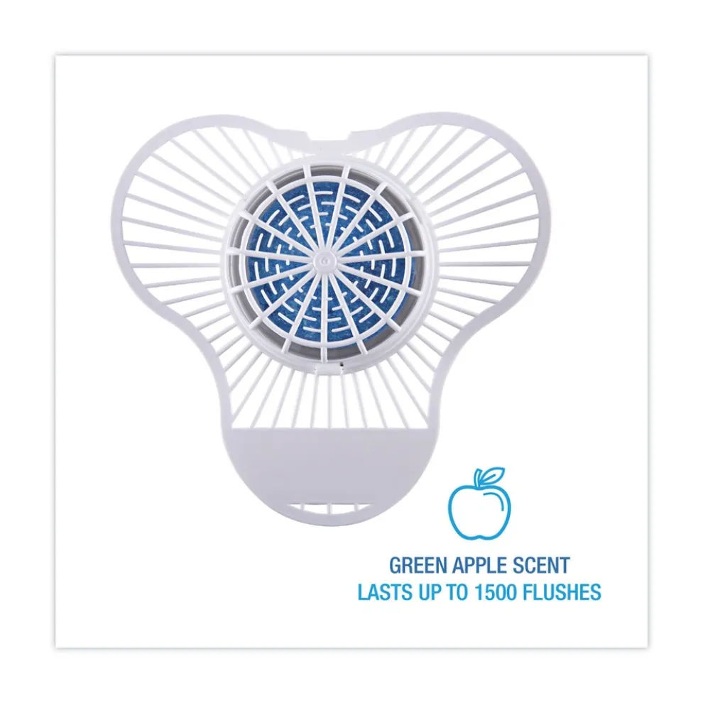 (12/Box) 3.25 oz. Urinal Screen with Non-Para Deodorizer Block – Green Apple Scent, Blue/White – NUS