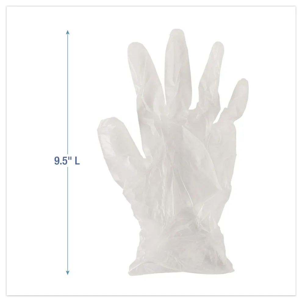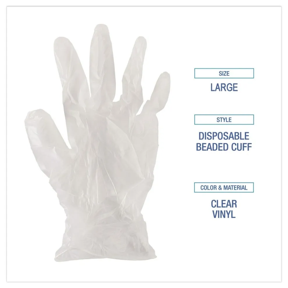 Boardwalk BWK361LCT 3.6 mil Thick 9.5 in. Long Powder-Free Exam Vinyl Gloves – Large, Clear (100/Box, 10 Boxes/Carton)