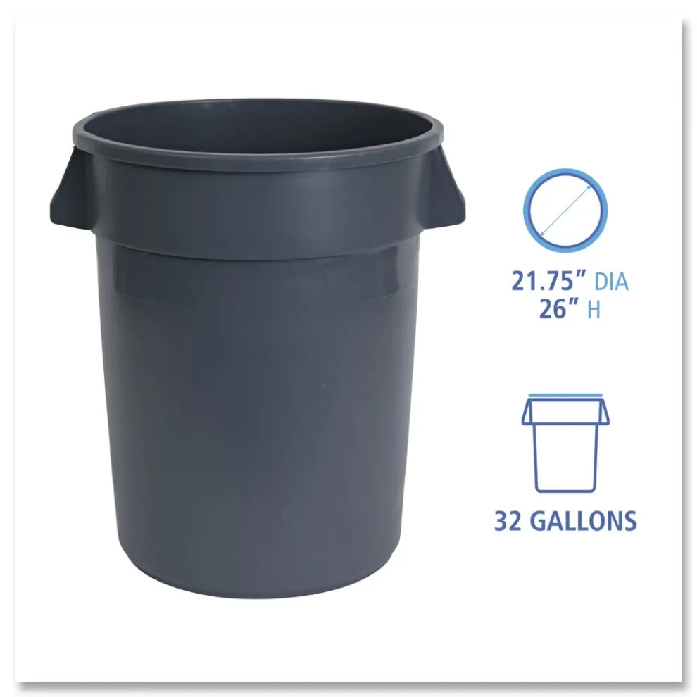 32 Gallon Linear-Low-Density Polyethylene Round Waste Receptacle – Gray – 32GLWRGRA