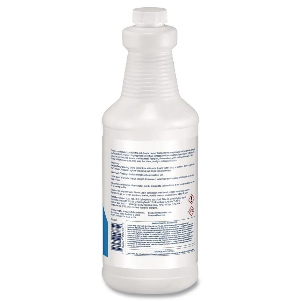 This is a concentrated porcelain tile and chrome cleaner that performs exceptionally well on a wide variety of surfaces and soils. Viscous clinging power on vertical surfaces provides exceptional penetration and cleaning action on porcelain, tile, chrome, stainless steel, fiberglass, shower doors, wash basins, urinals and toilet bowls. Safely removes scale, lime, soap film, verdigris, mildew and odors.
