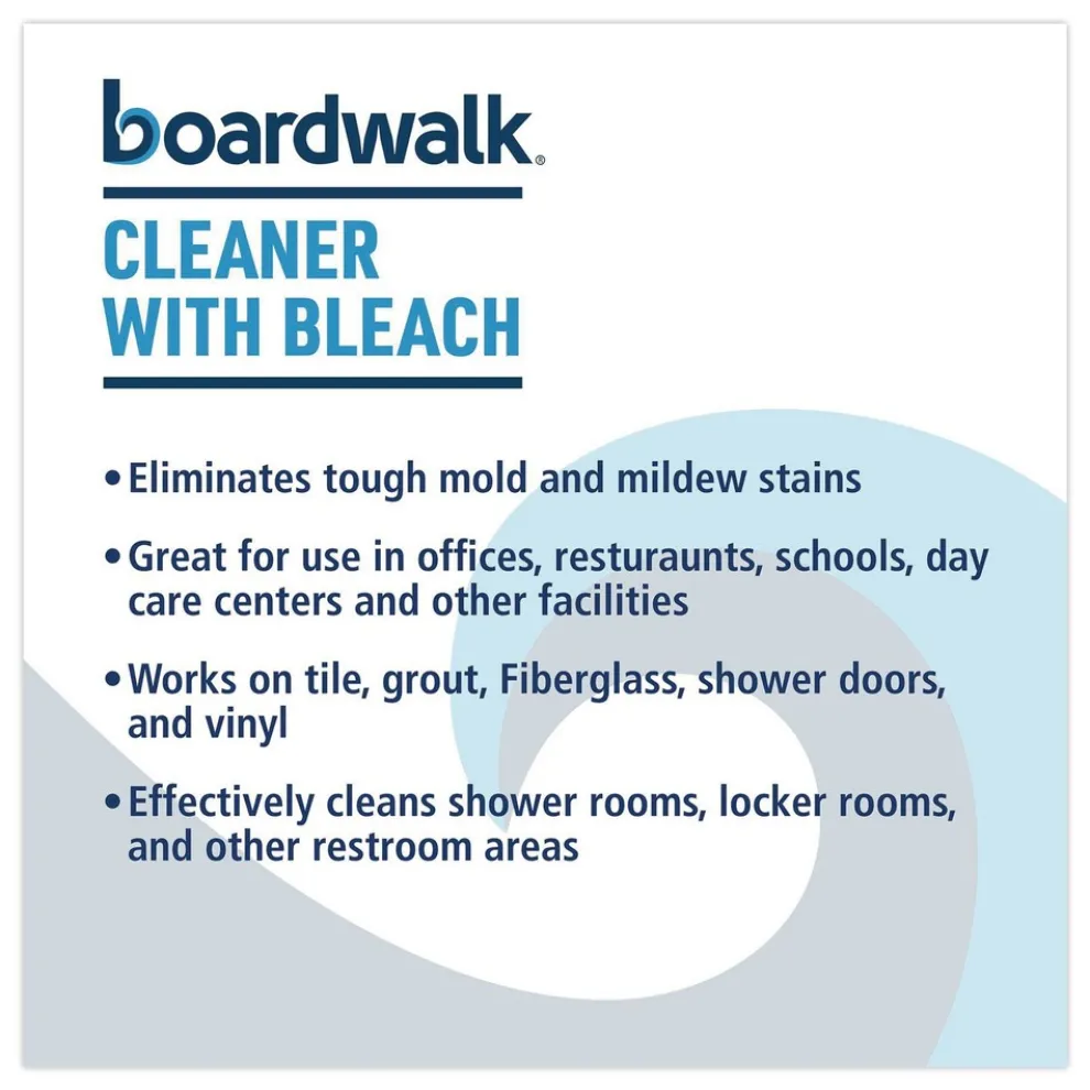 Boardwalk Cleaner with Bleach works as a mildew stain remover to quickly clean and whiten even the most difficult stains. Formulated with an odor counteractant and chlorine stabilizer.