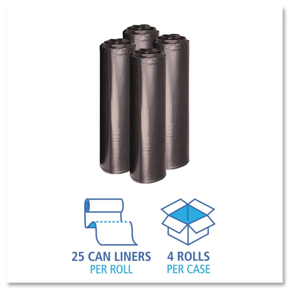 Boardwalk X6639SKKR01 33 in. x 39 in. 33 gal. 1.2 mil Recycled Low-Density Polyethylene Can Liners – Black (100/Carton)