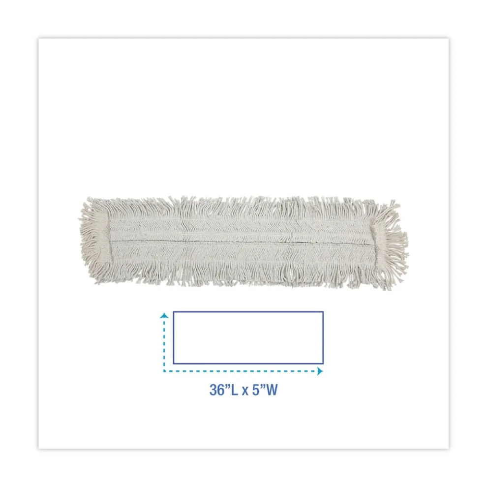 Boardwalk BWK1636 36 in. x 5 in. Disposable Cotton/Synthetic Dust Mop Head with Sewn Center Fringe – White