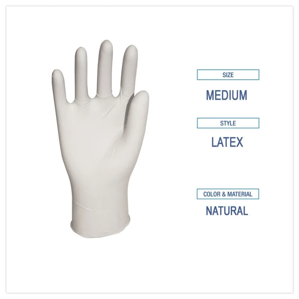 Boardwalk BWK345MBX 4.4 mil 12 in. Long Powder-Free General-Purpose Latex Gloves – Medium, Natural (100/Box)
