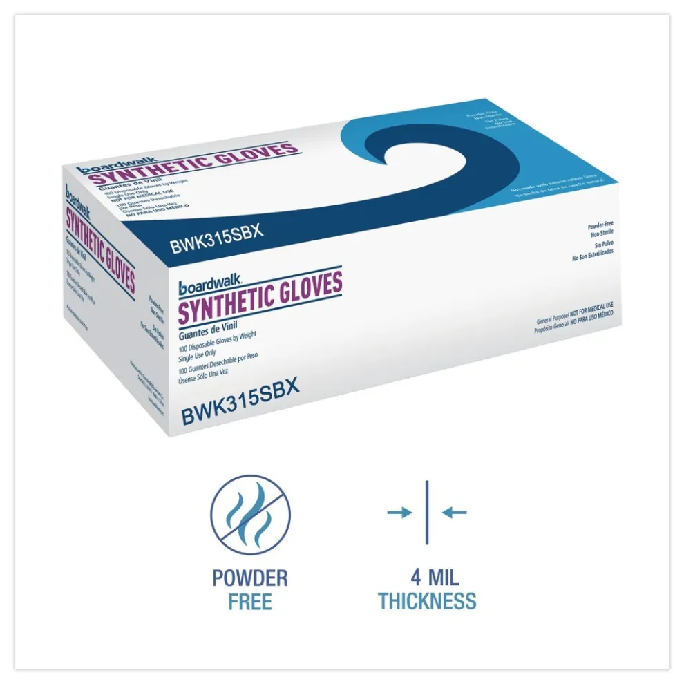 Boardwalk BWK315SBX 4 mil 9.5 in. Long Powder-Free Synthetic Vinyl Gloves – Small, Beige (100/Box)