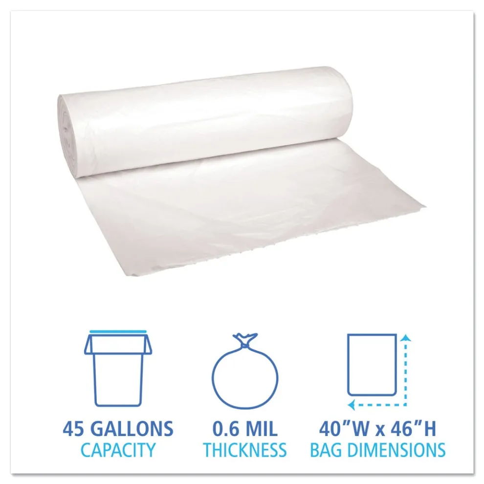 Boardwalk H8046HWKR01 40 in. x 46 in. 45 gal. 0.6 mil Low-Density Waste Can Liners – White (100/Carton)