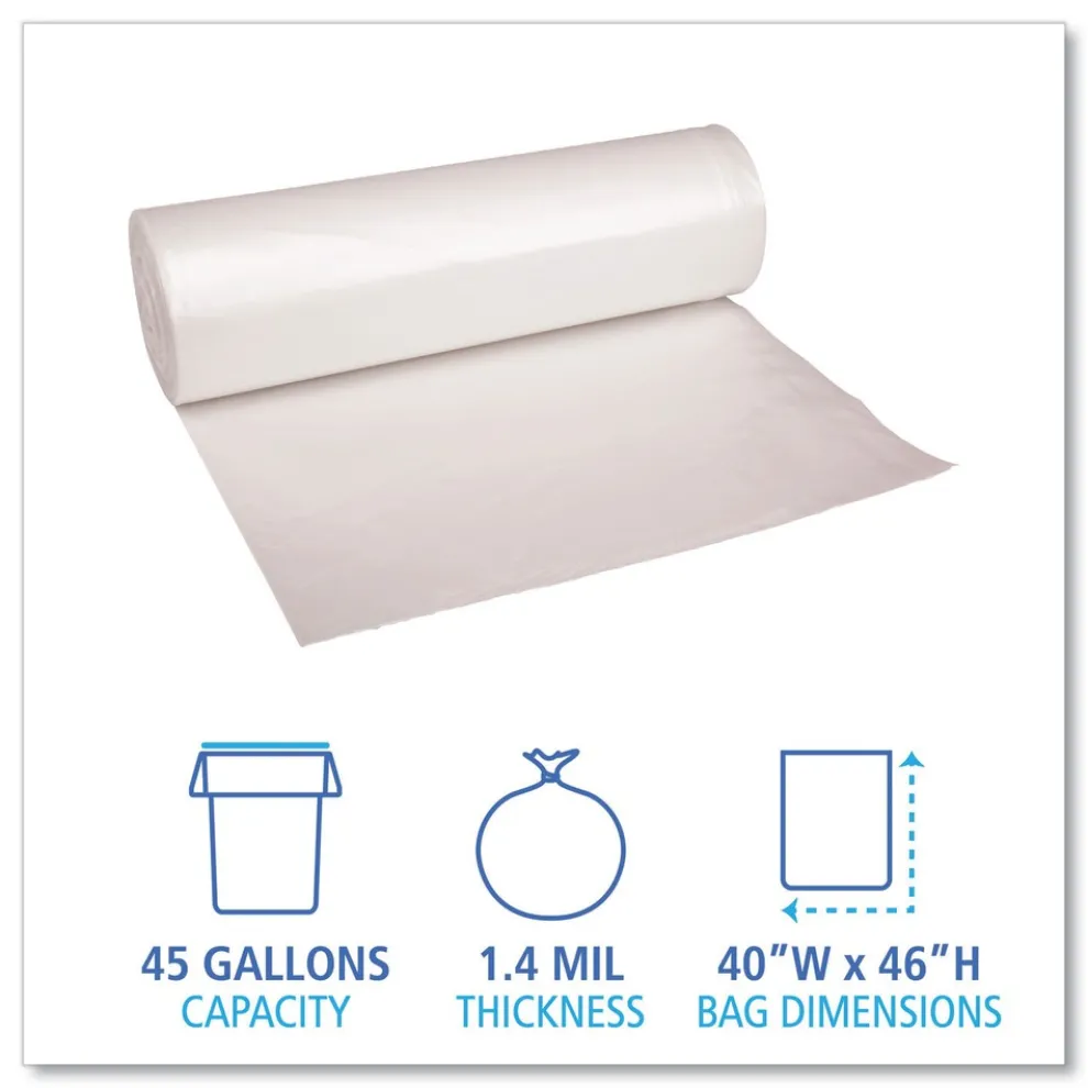 Boardwalk X8046DCKR01 40 in. x 46 in. 45 gal. 1.4 mil Recycled Low-Density Polyethylene Can Liners – Clear (100/Carton)
