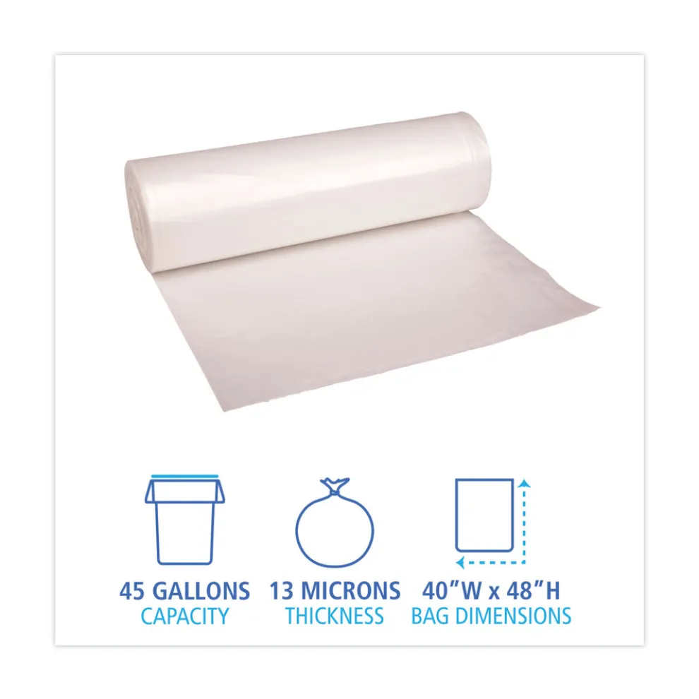Boardwalk Z8048HNKR01 40 in. x 48 in. 45 Gallon 13 mic High Density Industrial Coreless Roll Can Liners – Natural (250/Carton)