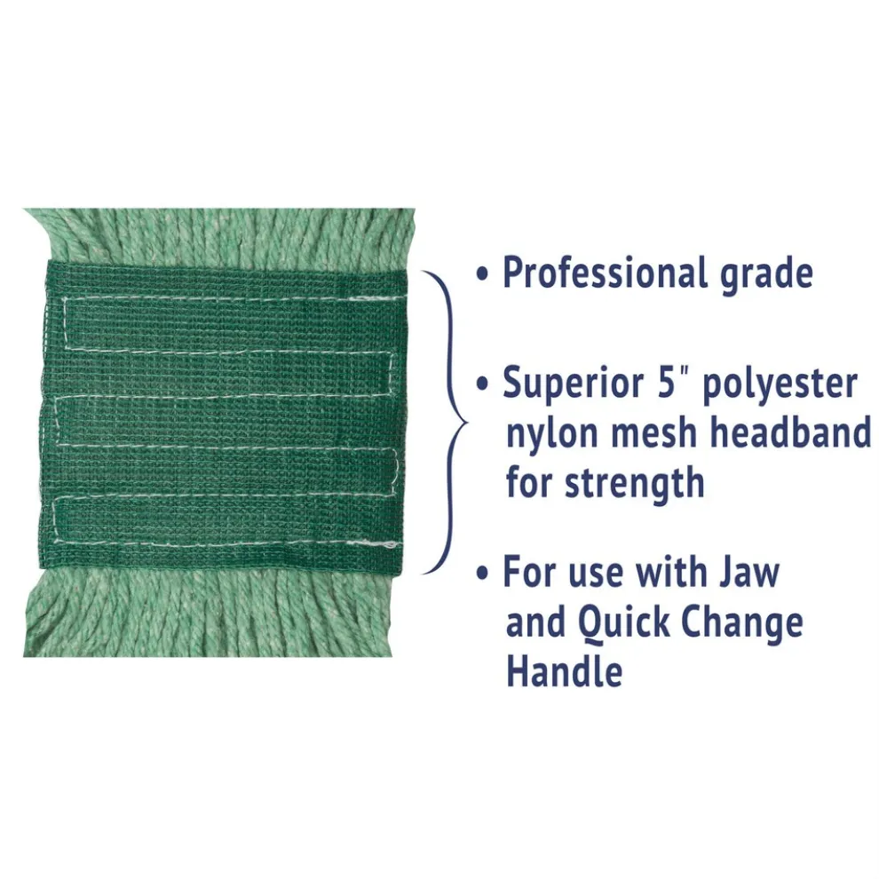 (12/Carton) 5 in. Super Loop Cotton/Synthetic Fiber Wet Mop Head – Medium, Green – 502GNCT