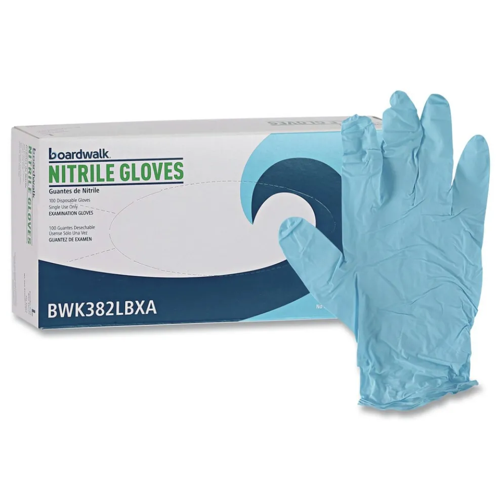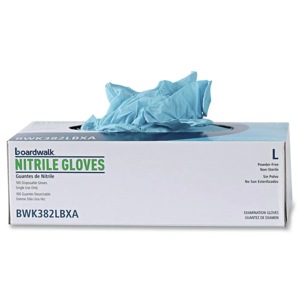 Boardwalk 382LCTA 5 mil 9.5 in. Long Powder-Free Disposable Examination Nitrile Gloves – Large, Blue (100/Box, 10 Boxes/Carton)