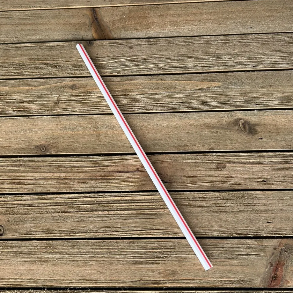 (12500/Carton) 7.75 in. Polypropylene Jumbo Straws – Red/White Striped – JSTUW775RW