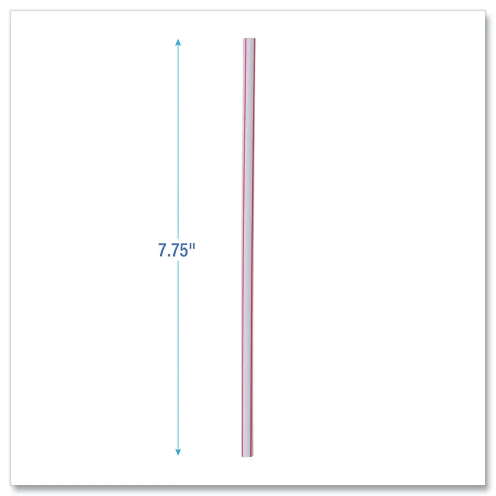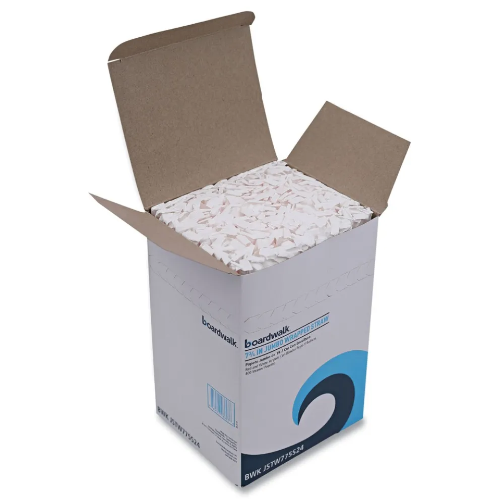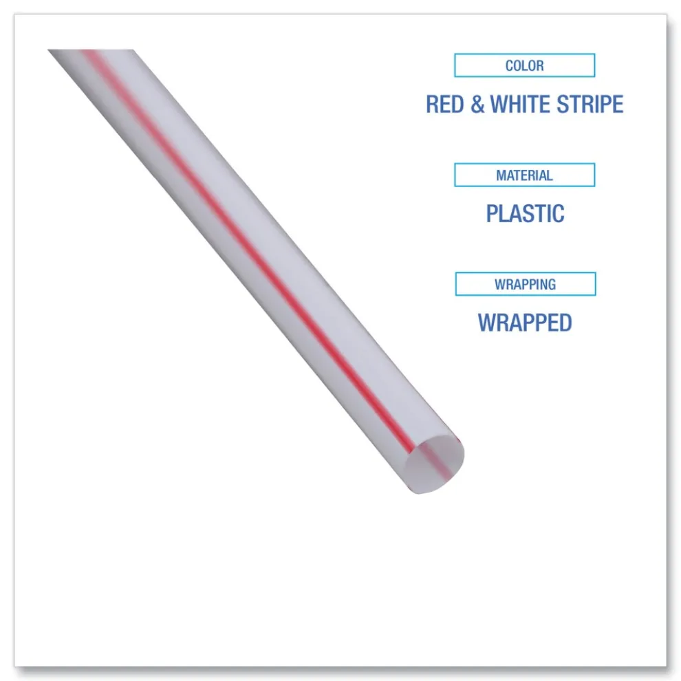Boardwalk BWKJSTW775S24 7.75 in. Wrapped Jumbo Plastic Straws – White/Red Stripe (400/Pack, 25 Packs/Carton)
