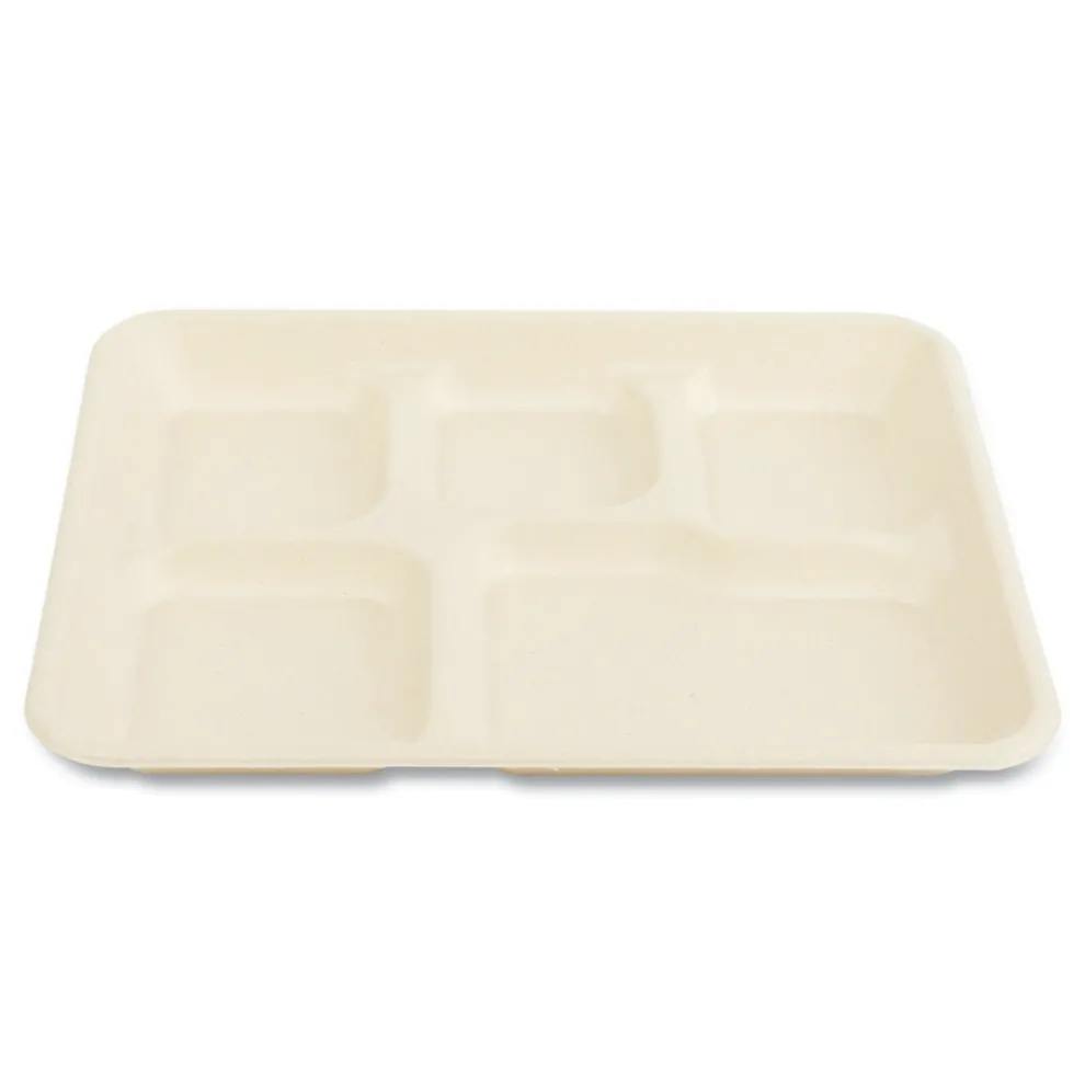 Boardwalk TL-15-TBW-NPFA 8.26 in. x 0.98 in. x 10.9 in. 5-Compartment Bamboo/Sugarcane Bagasse PFAS-Free Food Tray – Tan (500/Carton)