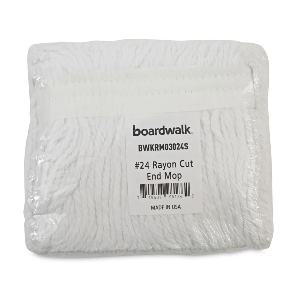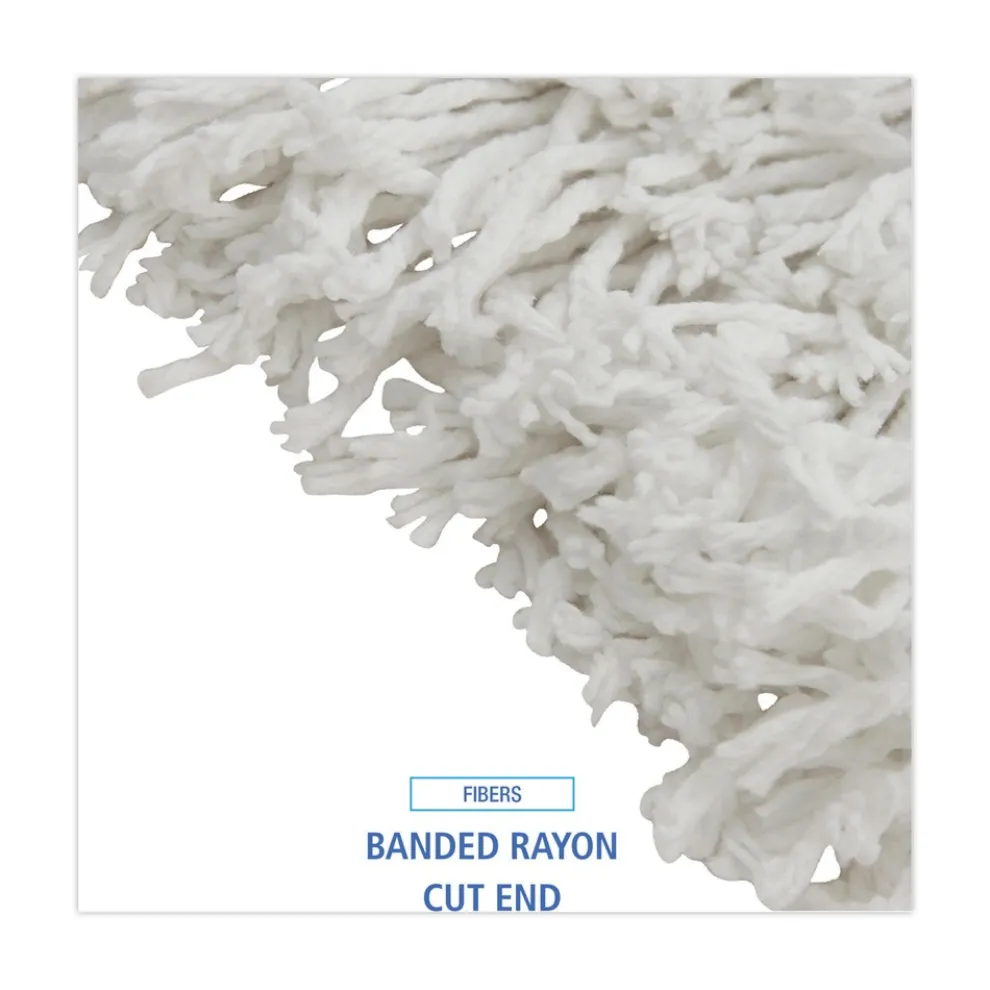 Boardwalk Banded Rayon Cut-End Mop Heads are made from an absorbent rayon fiber that makes general-use mop heads a reliable choice. The white, cut-end yarn mop heads are flexible and easy to wring out. Constructed with a heavy-duty 1.25 in. Headband that adds quality and dependability. For use on a variety of indoor floor surfaces and general-purpose cleaning. Mop handle sold separately.