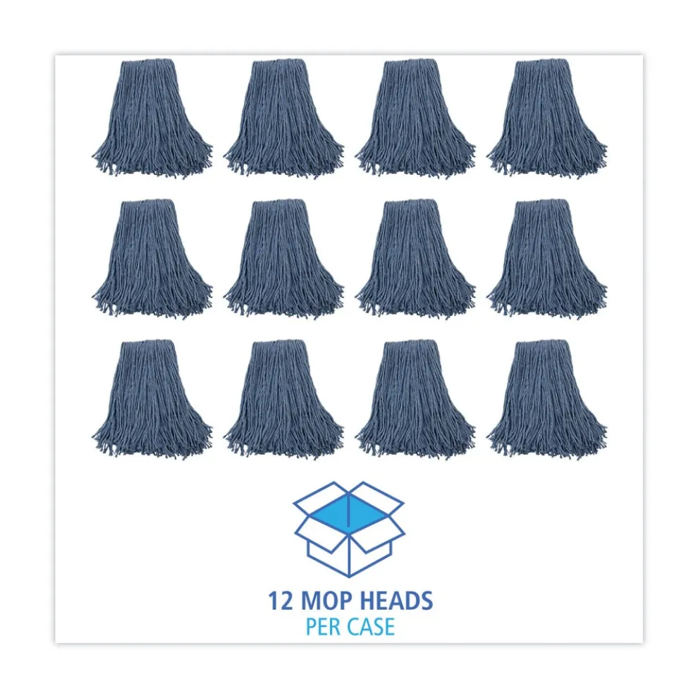 Boardwalk BWK2020B #20 Cut-End Cotton/Synthetic Fiber Standard Mop Head – Blue (12/Carton)