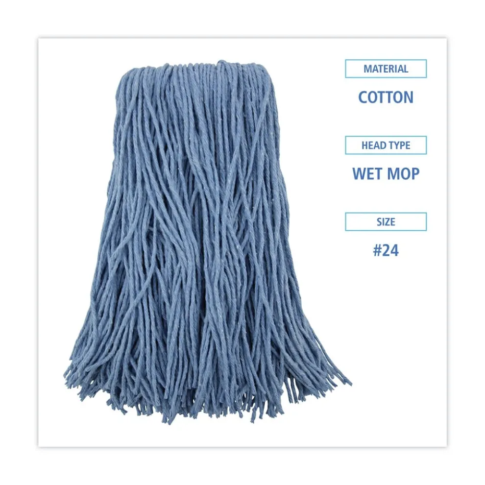 Boardwalk BWK2024B #24 Cotton/Synthetic Fiber Cut-End Standard Mop Head – Blue (12/Carton)