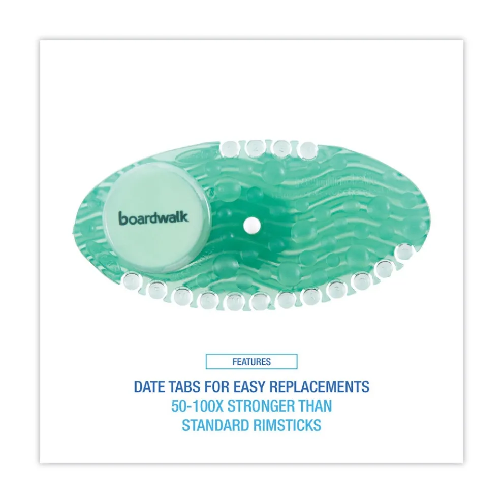 Boardwalk Curve Air Freshener is convenient way to mask unpleasant odors with consistent odor control. Place these air fresheners anywhere with the accompanying easy-to-use, clip holder. Each freshener is individually wrapped to seal in scent and freshens consistently for 30 days. Includes five fasteners per box. The unique date tabs allow you to easily keep track of replacement, ensuring a consistently fresher smelling area. The powerful scent contains 50 -100x more fragrance than standard rimsticks.