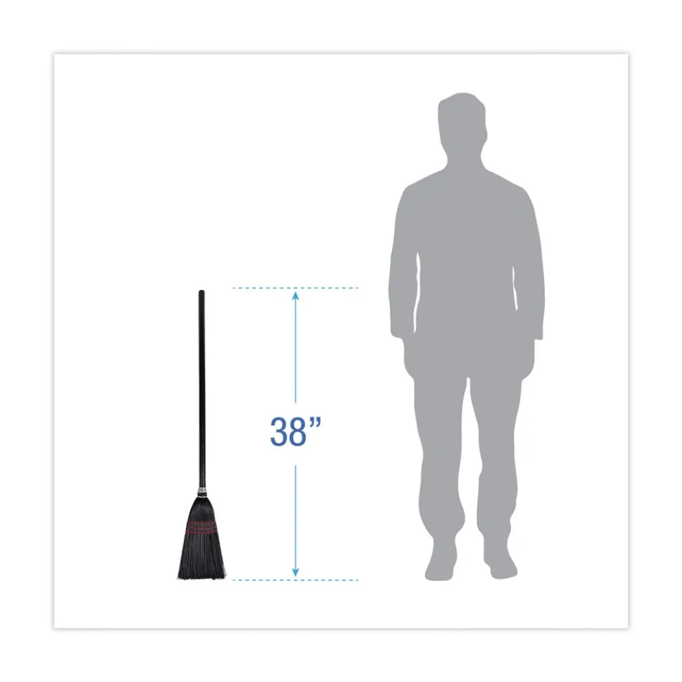Convenient size janitorial or housekeeping broom for light-duty sweeping. Long-lasting poly bristles get into nooks and crannies while pushing dust and debris. Composed of a black, wooden handle with flagged-tip bristles. The three rows of stitching and metal wrapping provided strength and dependability. Lightweight and portable. Great for hotels, restaurants, lobbies, and household sweeping on a variety of floor types.