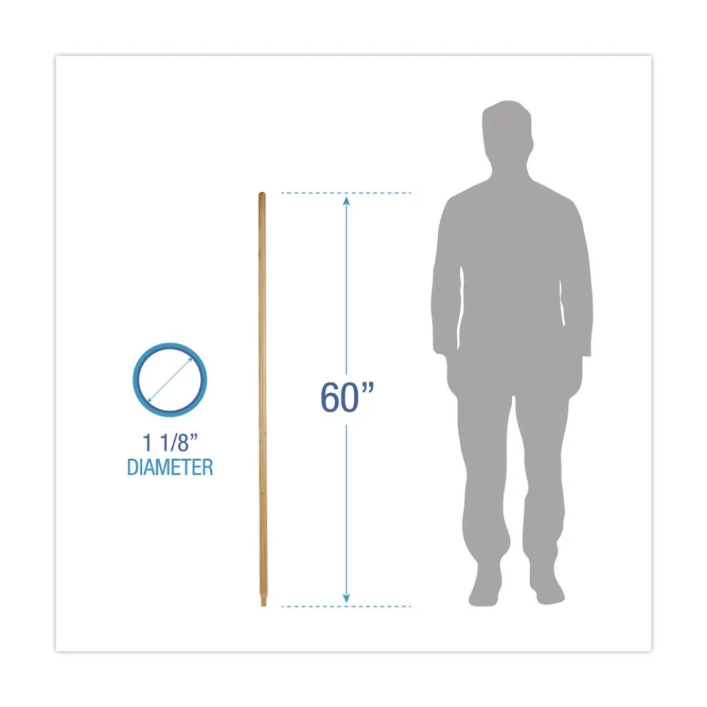 Boardwalk BWK137 Heavy-Duty Threaded End Lacquered Hardwood 1.13 in. Diameter x 60 in. Broom Handle – Natural