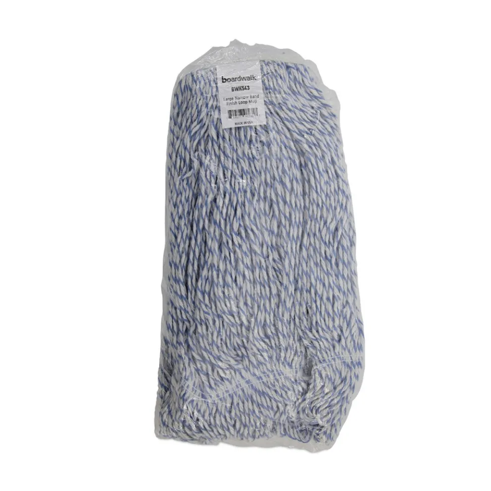 Boardwalk BWK543CT Narrow Floor Finish Rayon/Polyester Mop Head – Large, White/Blue (12/Carton)