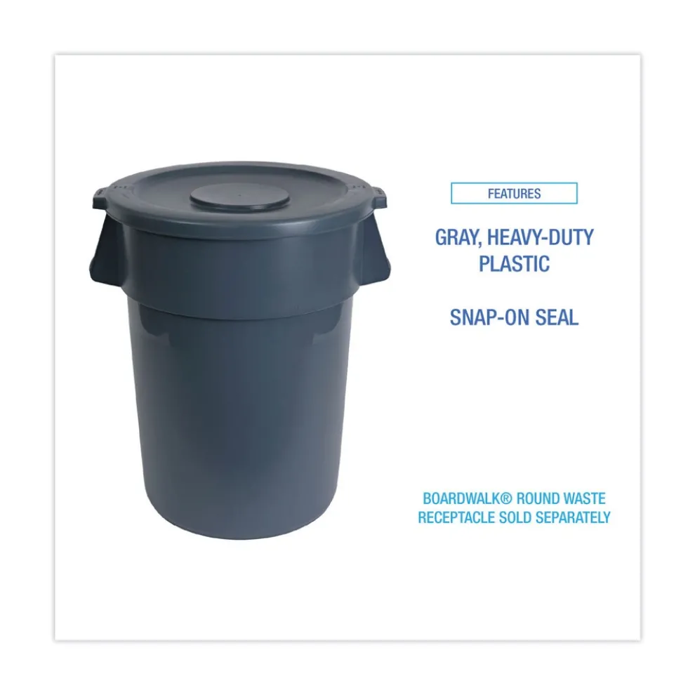 Boardwalk 1868182 Plastic Round Flat-Top Lid for 32 Gallon Waste Receptacles – Gray