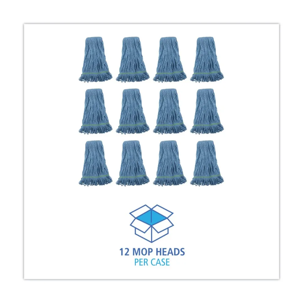 Boardwalk BWK502BLNBCT Super Loop Cotton/Synthetic Fiber Wet Mop Head with 1 in. Headband – Blue (12/Carton)