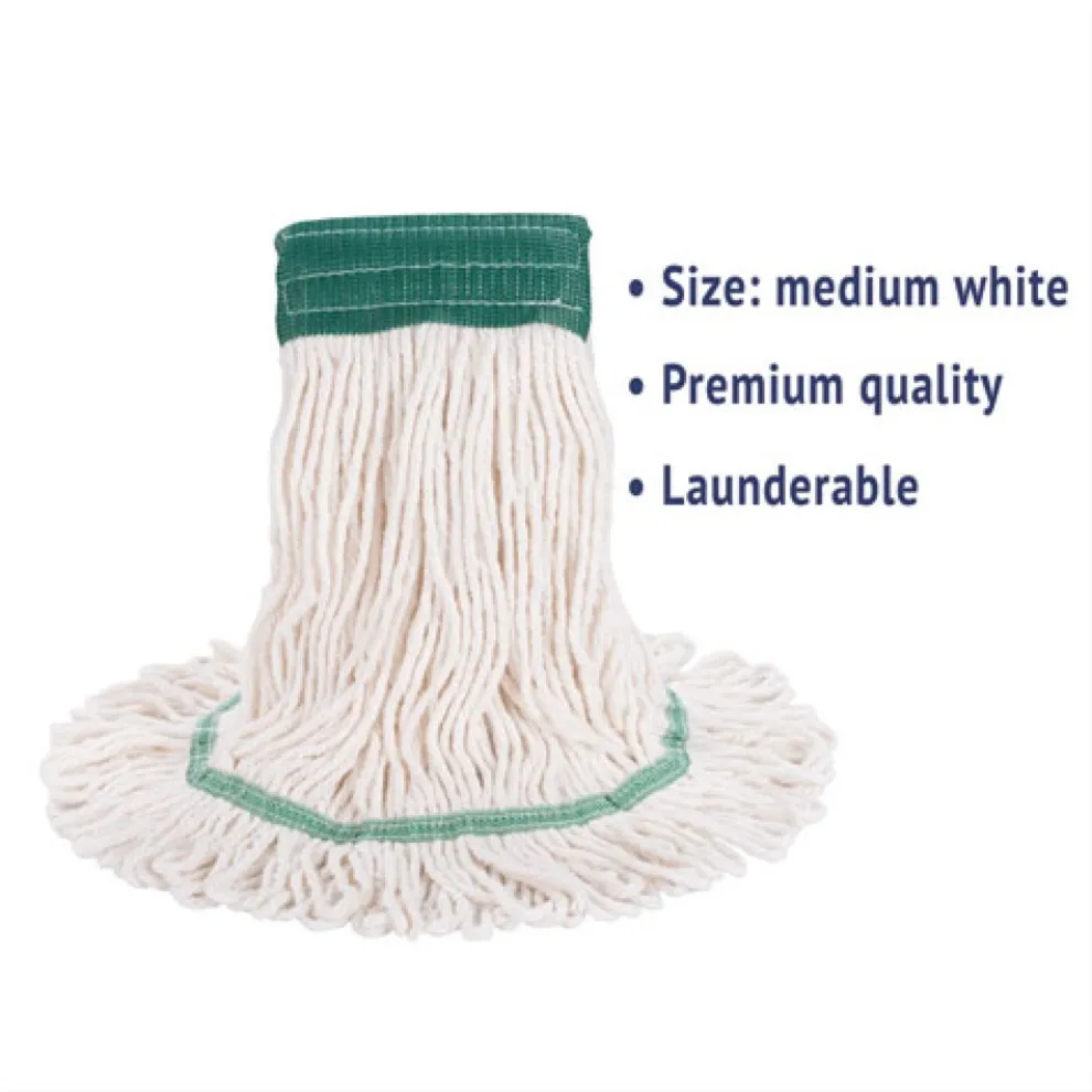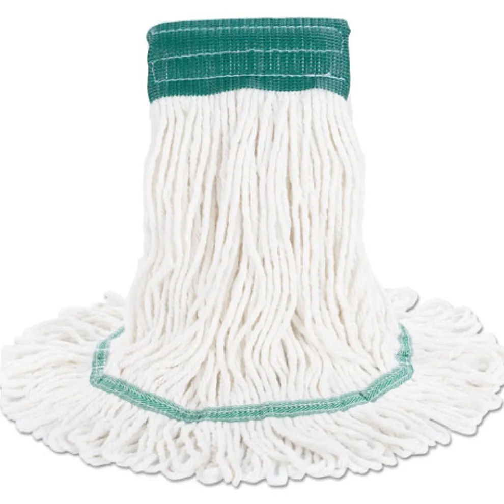 Boardwalk Super Loop Wet Mop Heads are created from premium-quality, four-ply cotton/synthetic yarn for maximum absorbency. The industrial strength mop head is designed for high-volume use. Each head absorbs up to seven times its own weight in liquid. Constructed to be more durable with heavy-duty, vinyl headbands. Machine washable. Launder in mesh bag. Use with clamp or spring grip-style handles, which are sold separately.