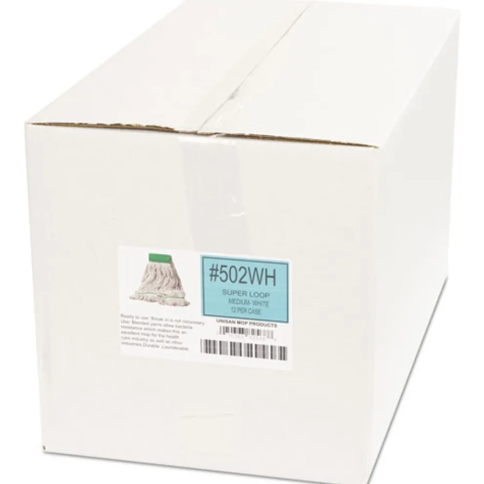 (12/Carton) Super Loop Wet Mop Head with Cotton/Synthetic Fiber and 5 in. Headband – Medium, White – 502WHCT