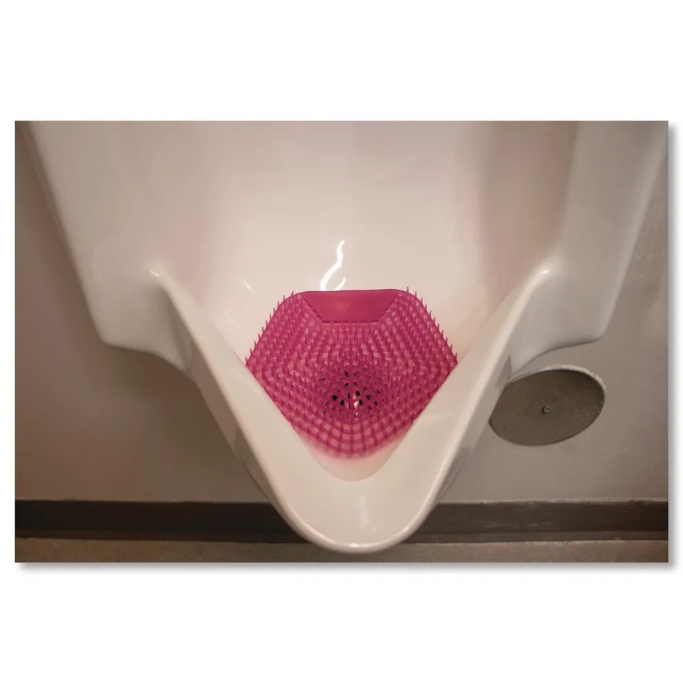 These anti-splash urinal screens reduce urine splash keeping restrooms cleaner and stops the tracking of urine from the restroom floor to other areas of the facility. This also results in less time spent cleaning. They freshen urinals for 30 days and contain beneficial bacteria that consume odors at the source keeping drains clean and smelling fresh. The patented two-sided design eliminates installation errors.