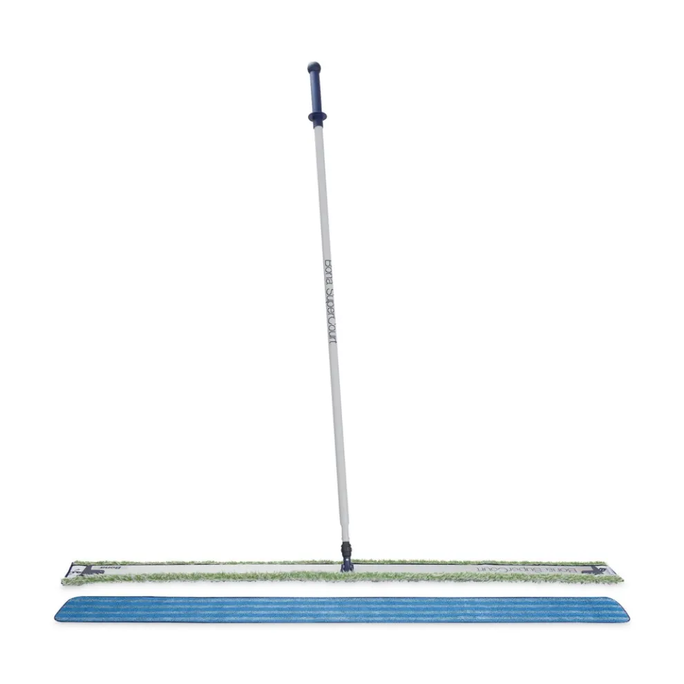The Bona SuperCourt Athletic Floor Care System makes it easy to keep your athletic flooring clean and attractive. The 60 in. heavy duty aluminum mop with unique flared edge is perfect for dry or wet mopping. Included microfiber dusting pad uses special short and long fibers to trap and remove dust, dirt and debris quickly and safely from floors. Microfiber wet tacking pad is highly absorbent and great for daily wet cleaning or removal of abrasive dust during recoating. Both pads are washable for multiple uses.